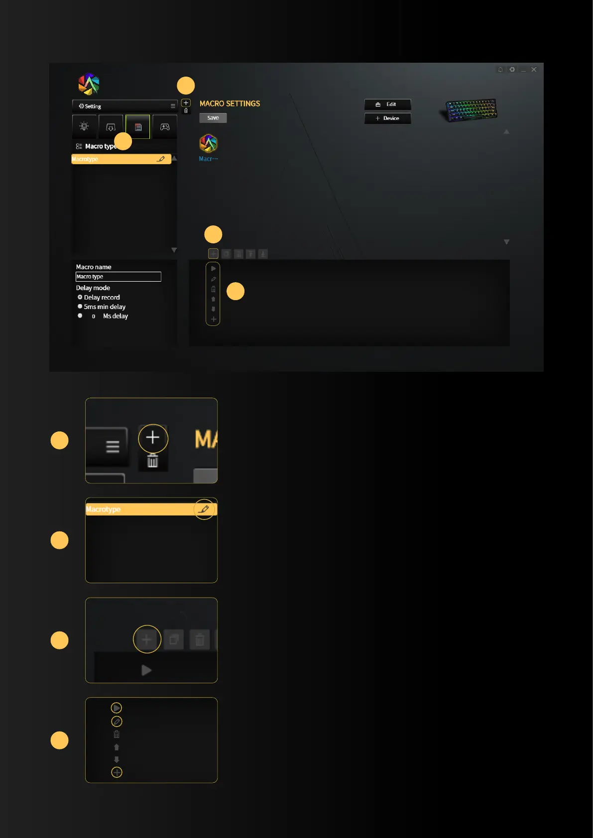 Kemove 61 - Macro Creation and Management; Add Macro Category; Record and Edit Macros