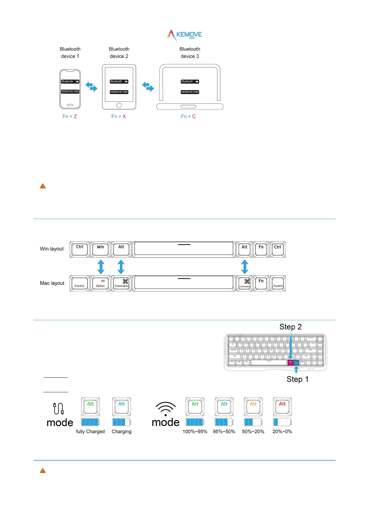 Kemove K68 - 3 Mac;Win 切换; 4 电量显示; 5 功能组合键