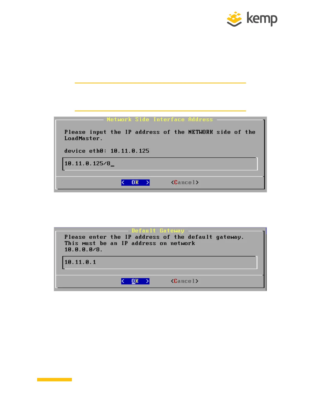 LoadMaster, in the input field within the Network Side Interface Address field and press
