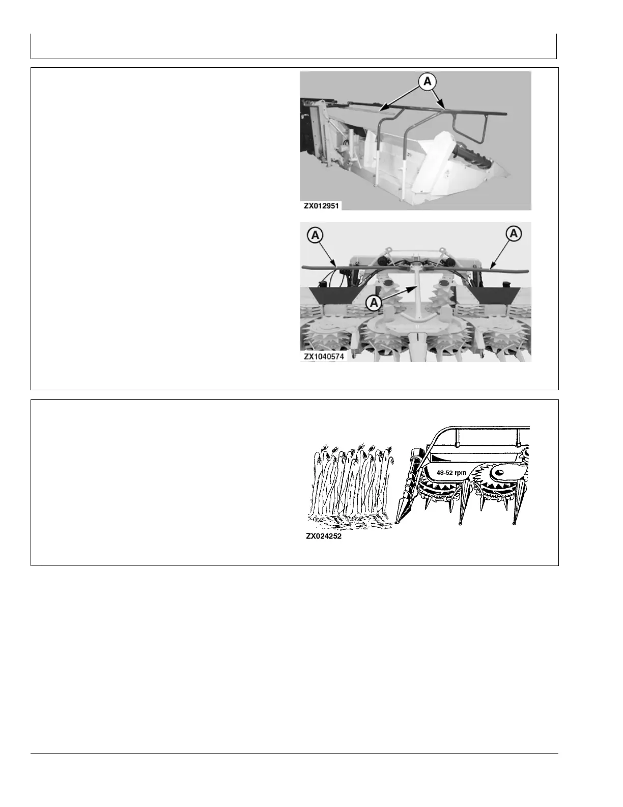 Set the feed bars (A) lower so that the stalks do not