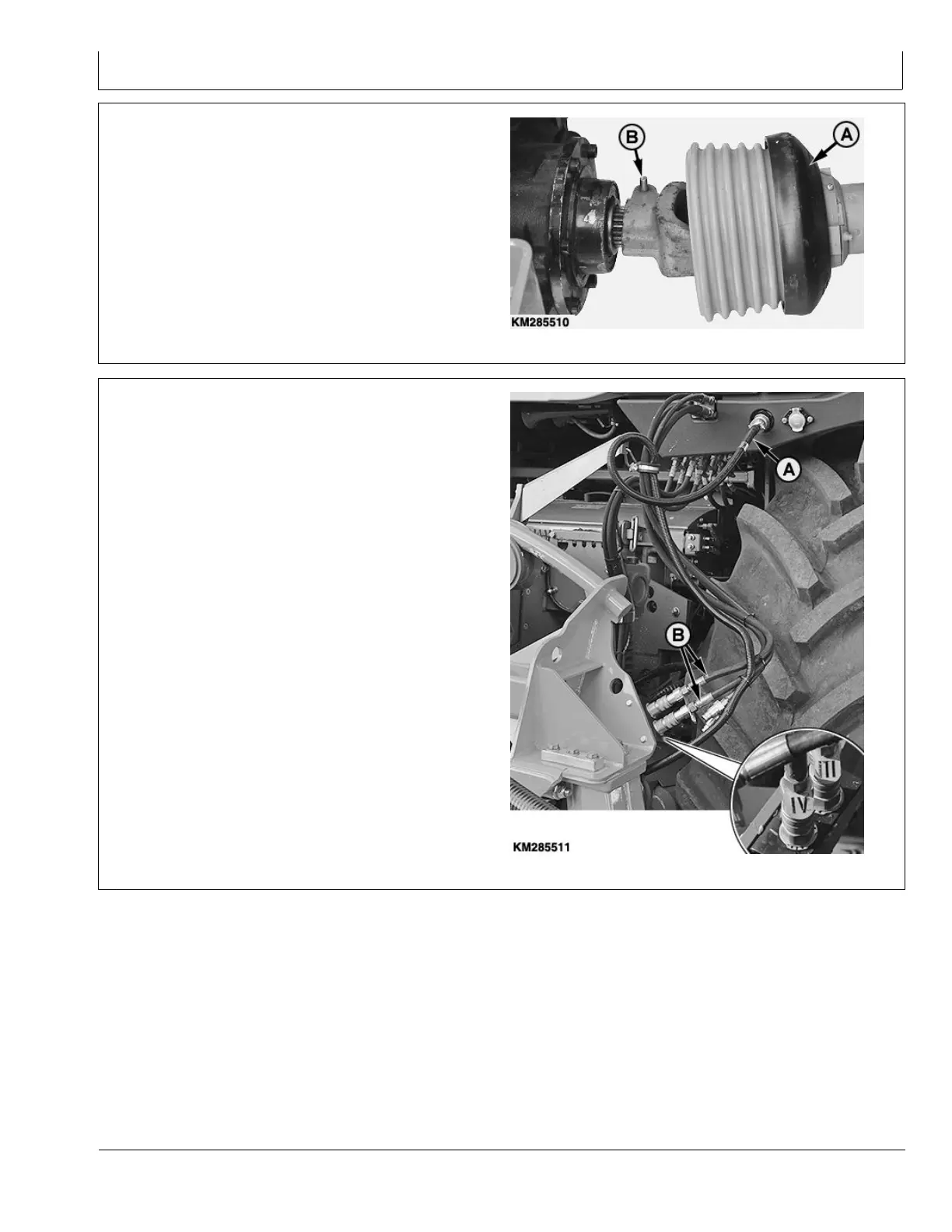 NOTE: Hydraulic hoses (B) of the forage harvester