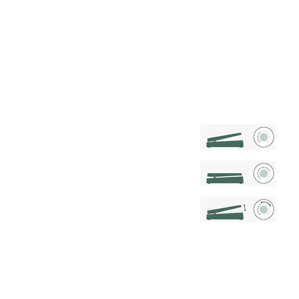 Enfoncez ensuite la pédale à l’avant (orteils). Tournez la commande