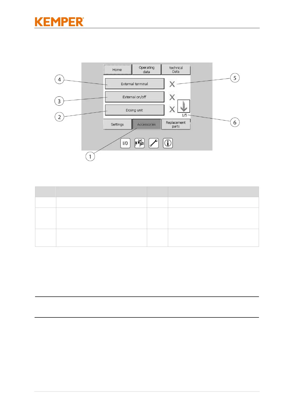 An information screen for any optionally available accessory components