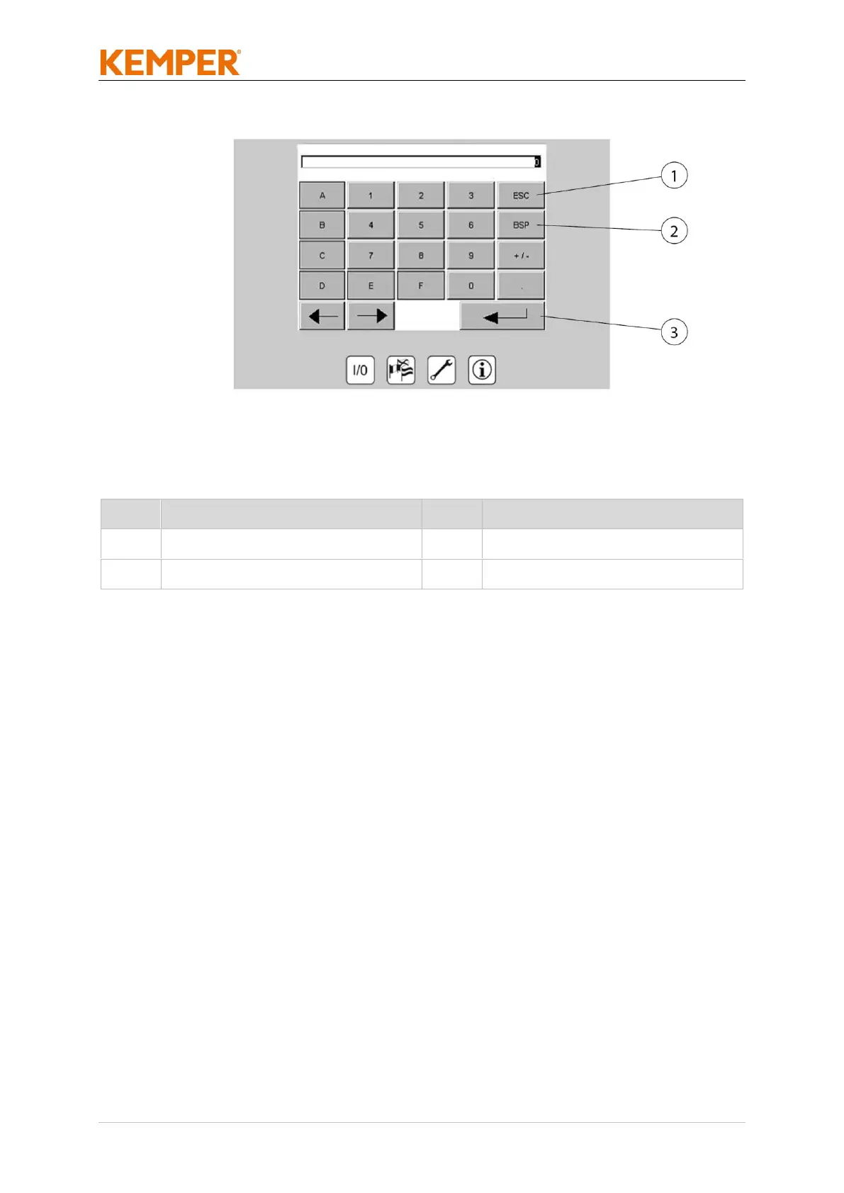 Tab. 72: Parameter entry keypad