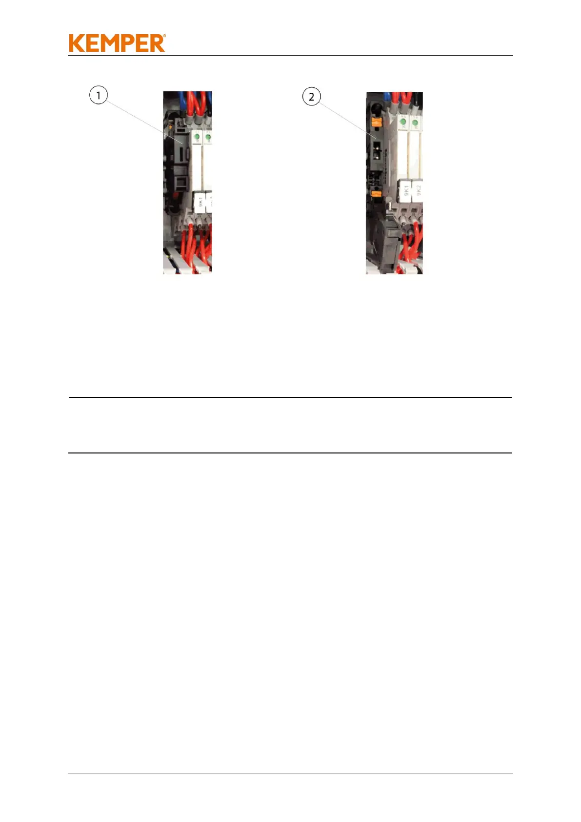 There is a fuse holder in the control cabinet of the product (Pos. 1). The