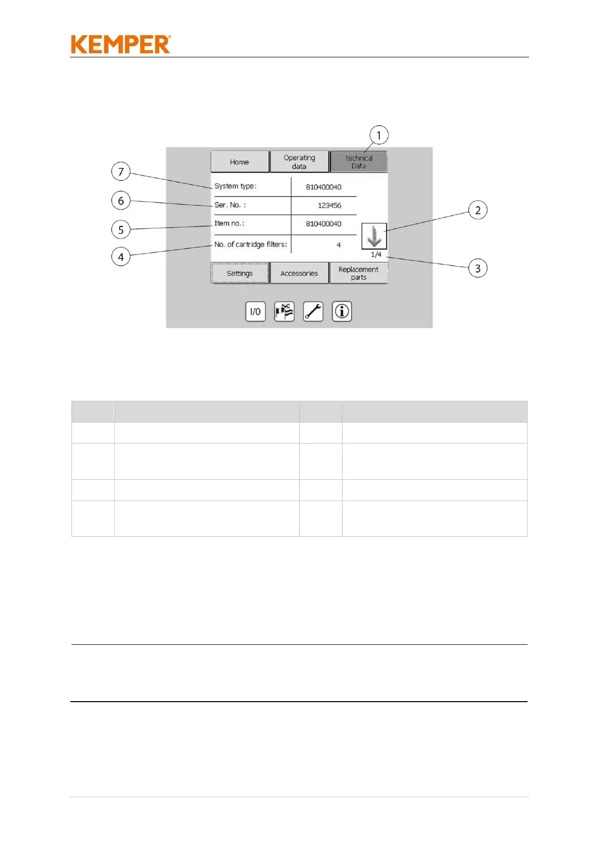 Pos. 1 Anzeige der technischen Daten des Produkts.