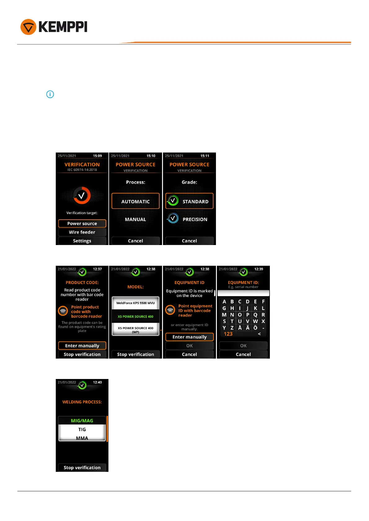 >> Ensure that the welding equipment settings are suitable for the verification process in question.