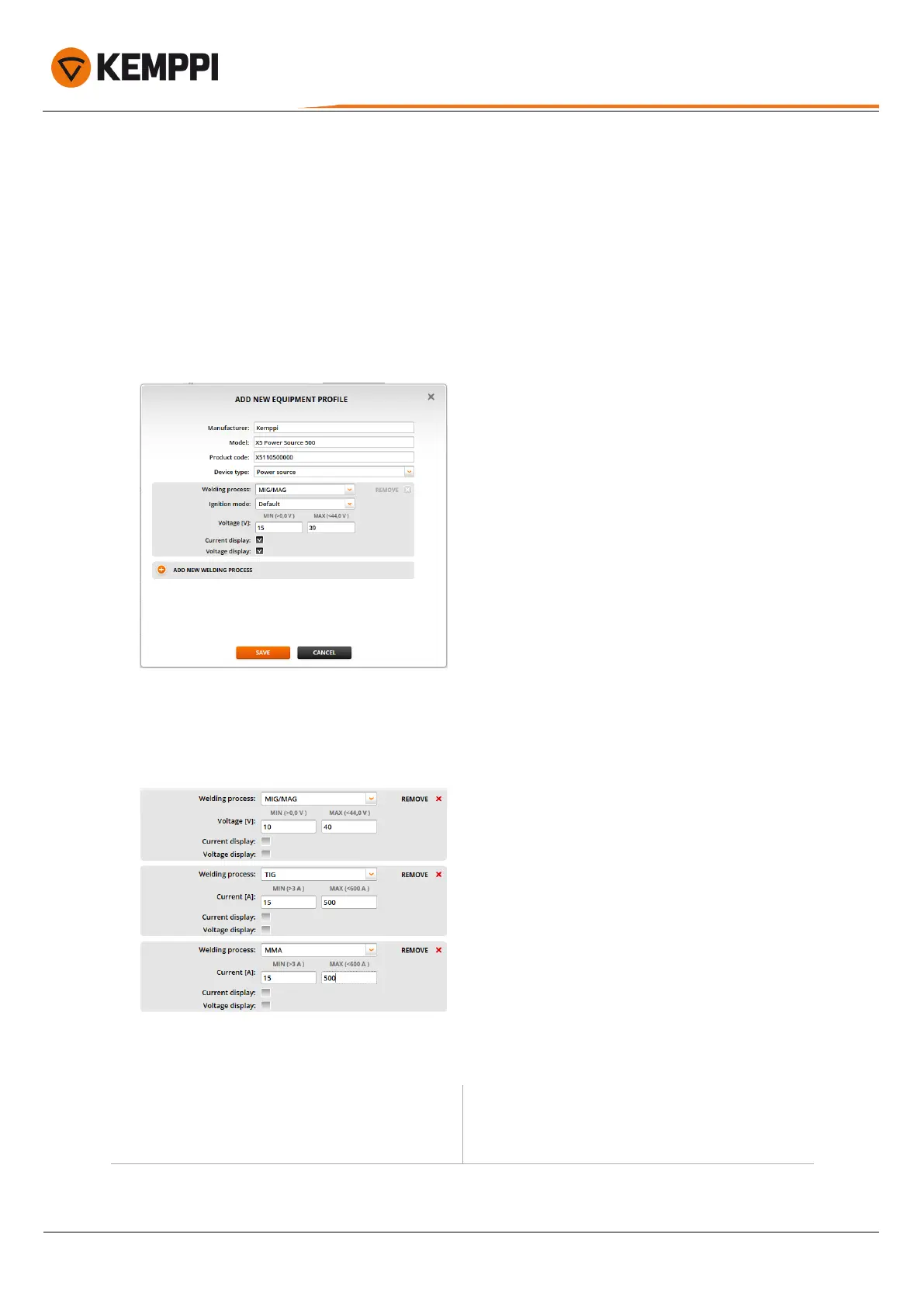 To add new equipment profiles for non-Kemppi equipment: