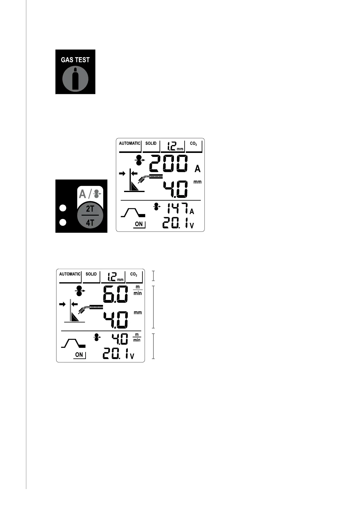 To test the shielding gas ow, press the gas test button once. The shielding gas starts to ow