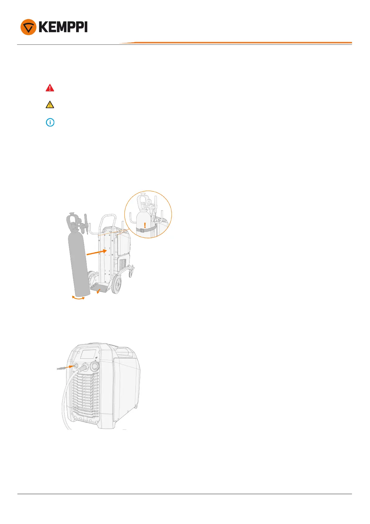 - If a transport unit with a gas bottle rack is used, install the gas bottle on the transport unit first, then make the con-