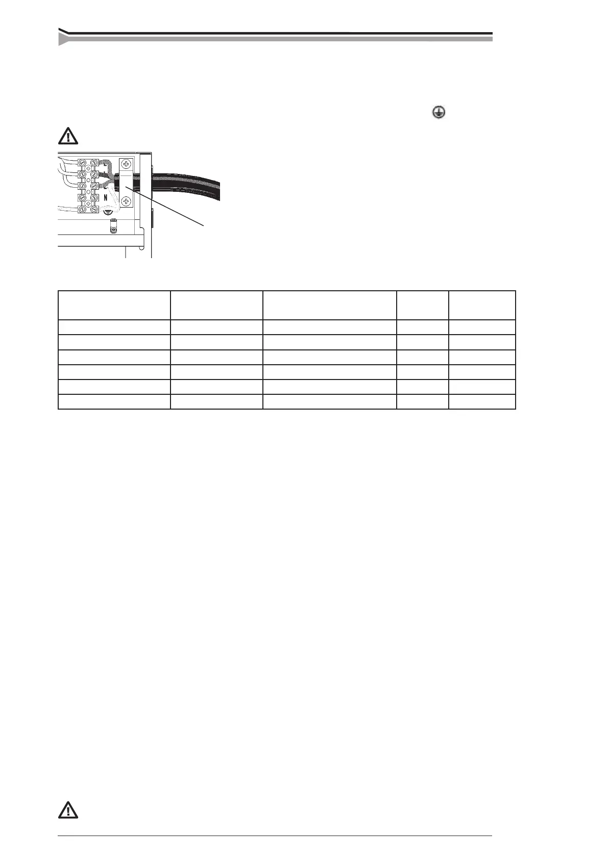 Sizes of the mains cables and fuse ratings for the machine at 100% duty cycle are specied in