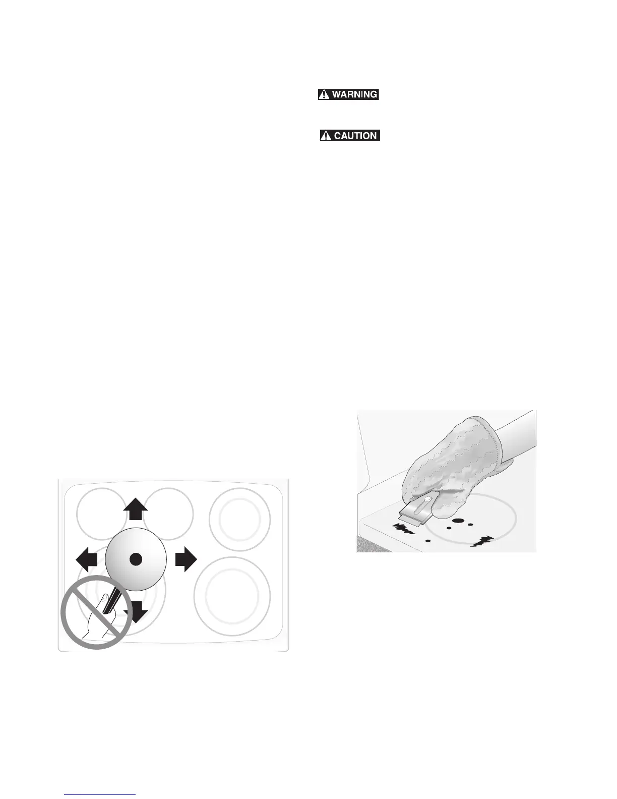 • Drop heavy or hard objects on the ceramic glass cooktop,