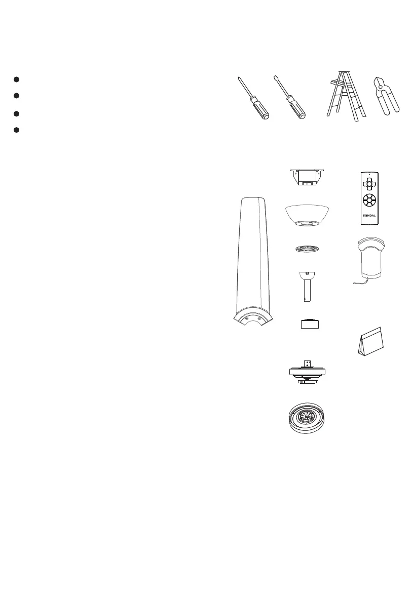 Kendal Lighting AC-24344 - Tools and Materials Required for Fan Installation; Package Contents Checklist