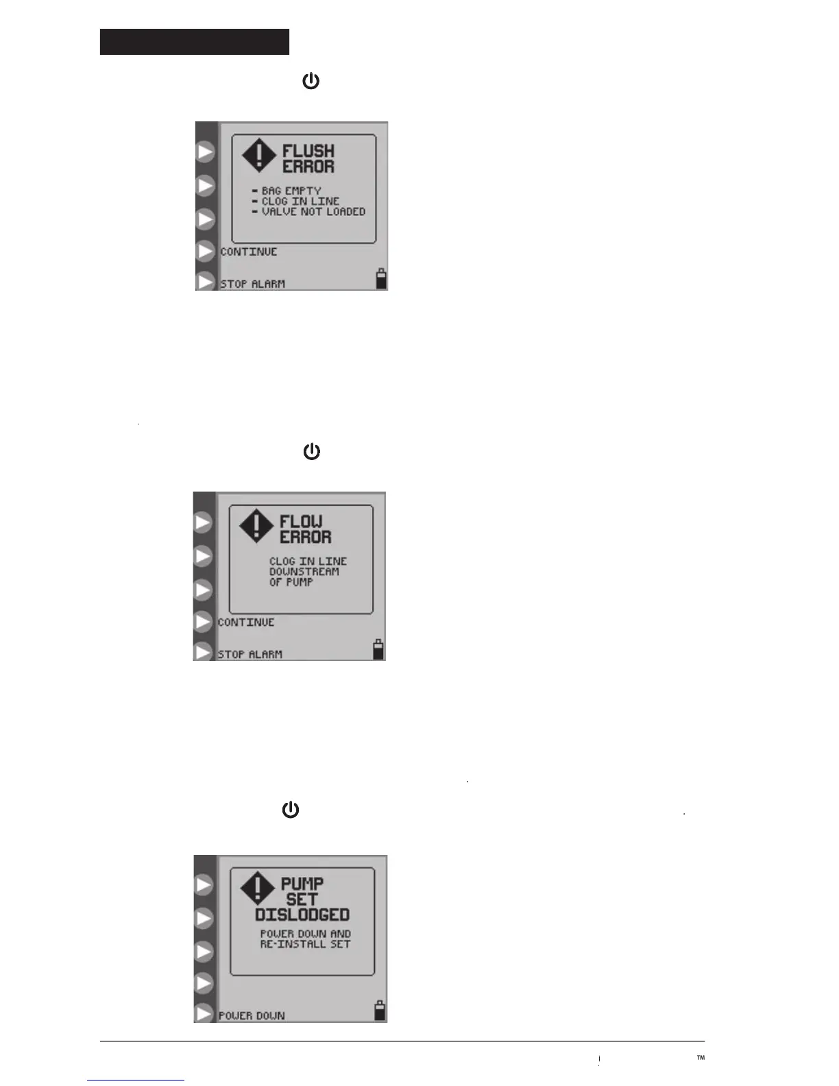 screen appears when either the feeding or the flushing solution is no longer being delivered because
