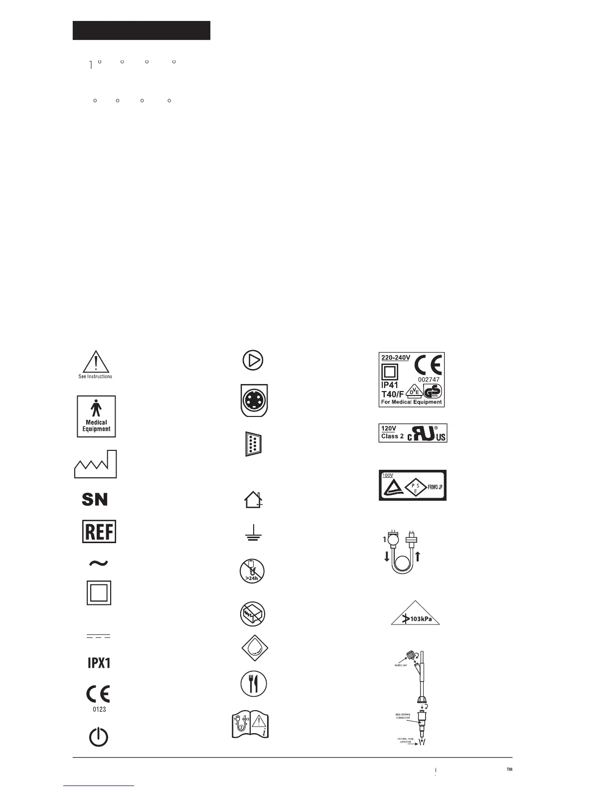 The following symbols are found on the pump or on the accesories, such as the A/C adapter.