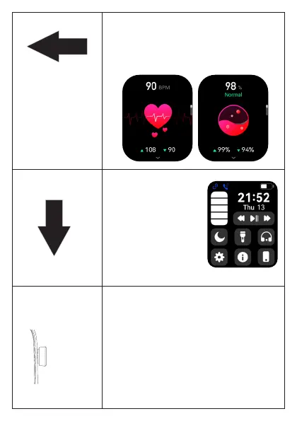 to left will display steps, indicative heart rate,