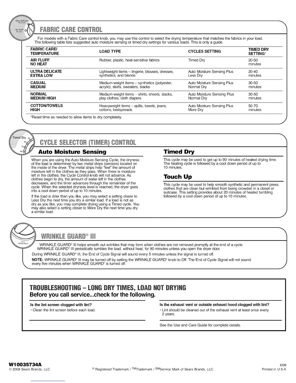 FABRIC CARE/ LOAD TYPE CYCLES SETTING TIMED DRY