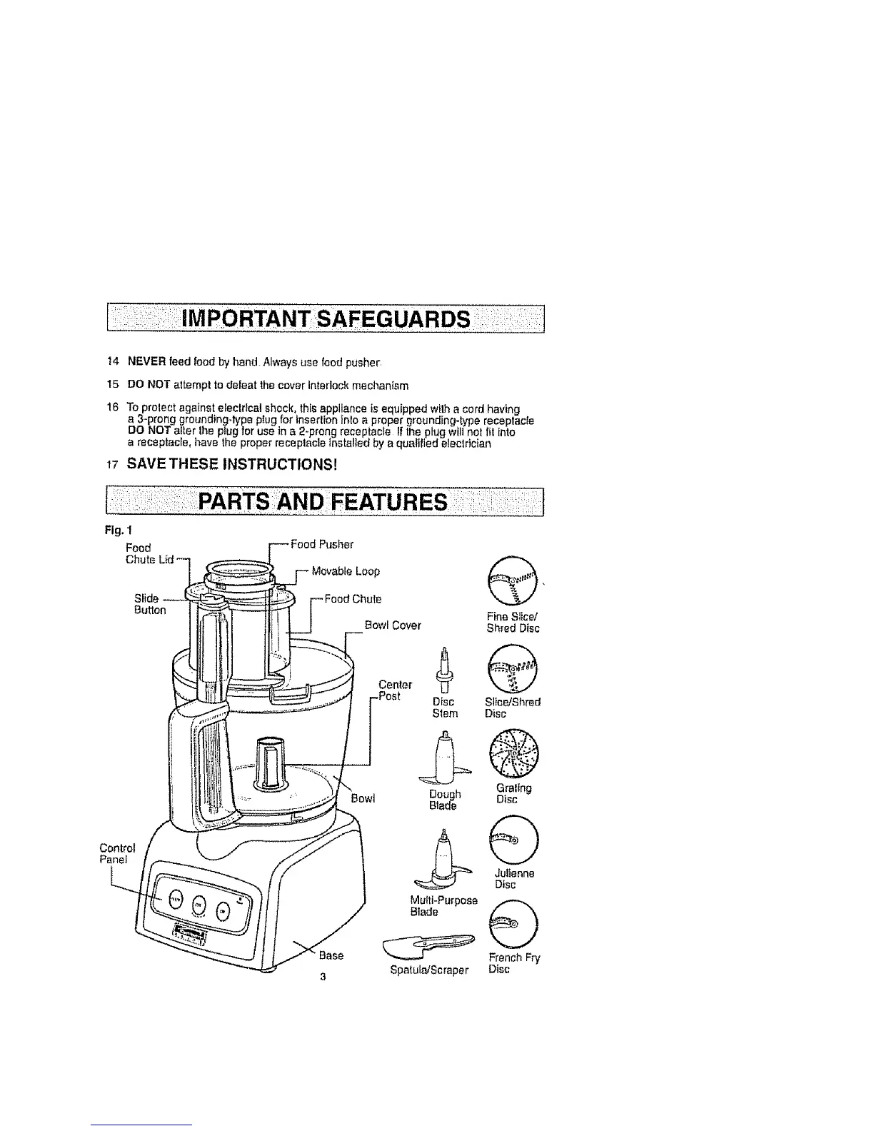 14NEVERfeed food by hand. Always use food pusher,
