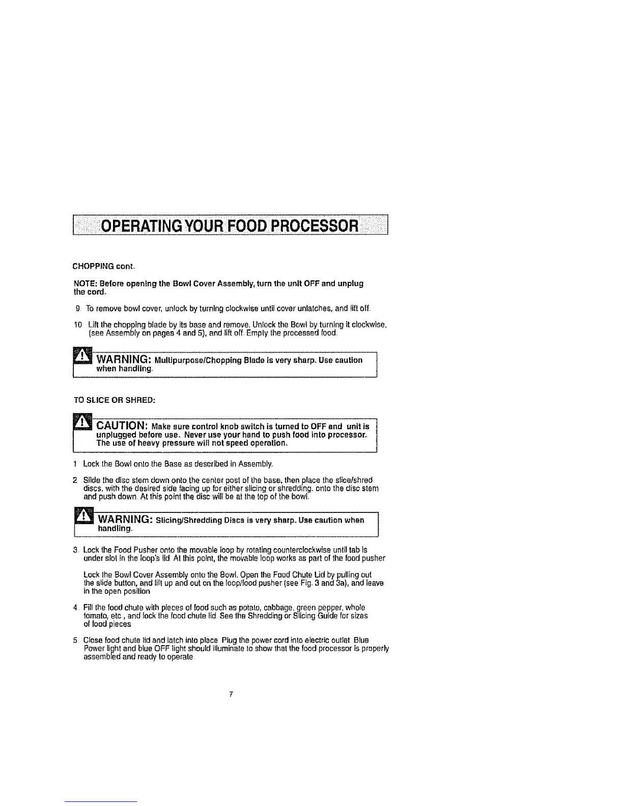 _ ARNING: MultipurposetChopptng Blade is very sharp_ Use caution Iwhen handling.