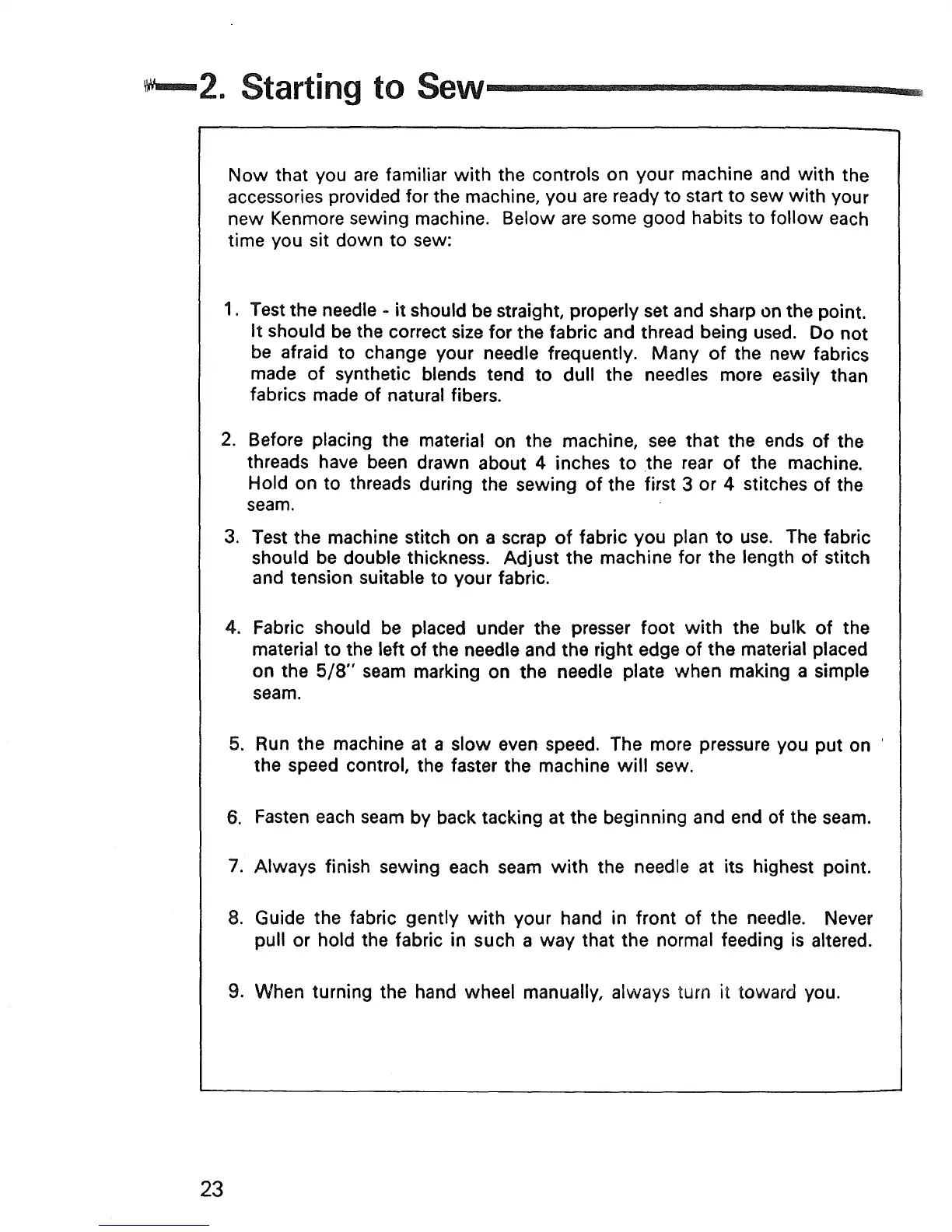 Kenmore 1020 - Starting to Sew