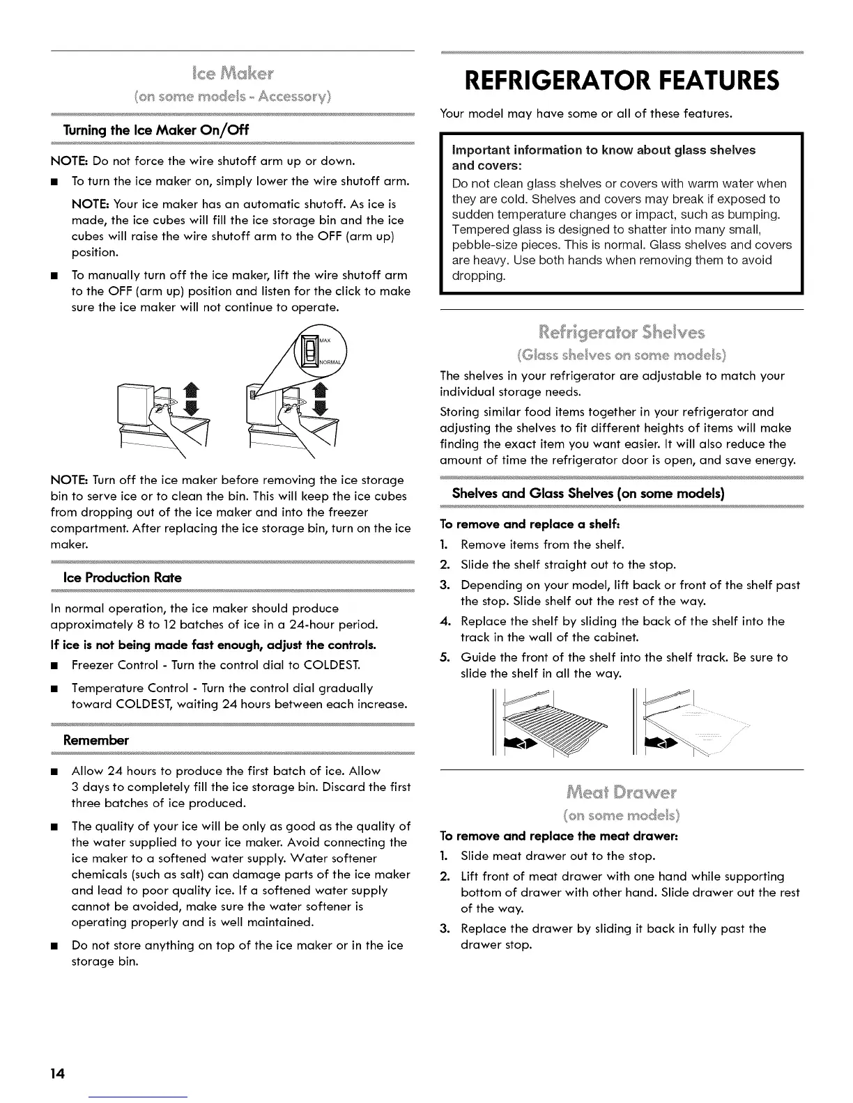 • To turn the ice maker on, simply lower the wire shutoff arm.