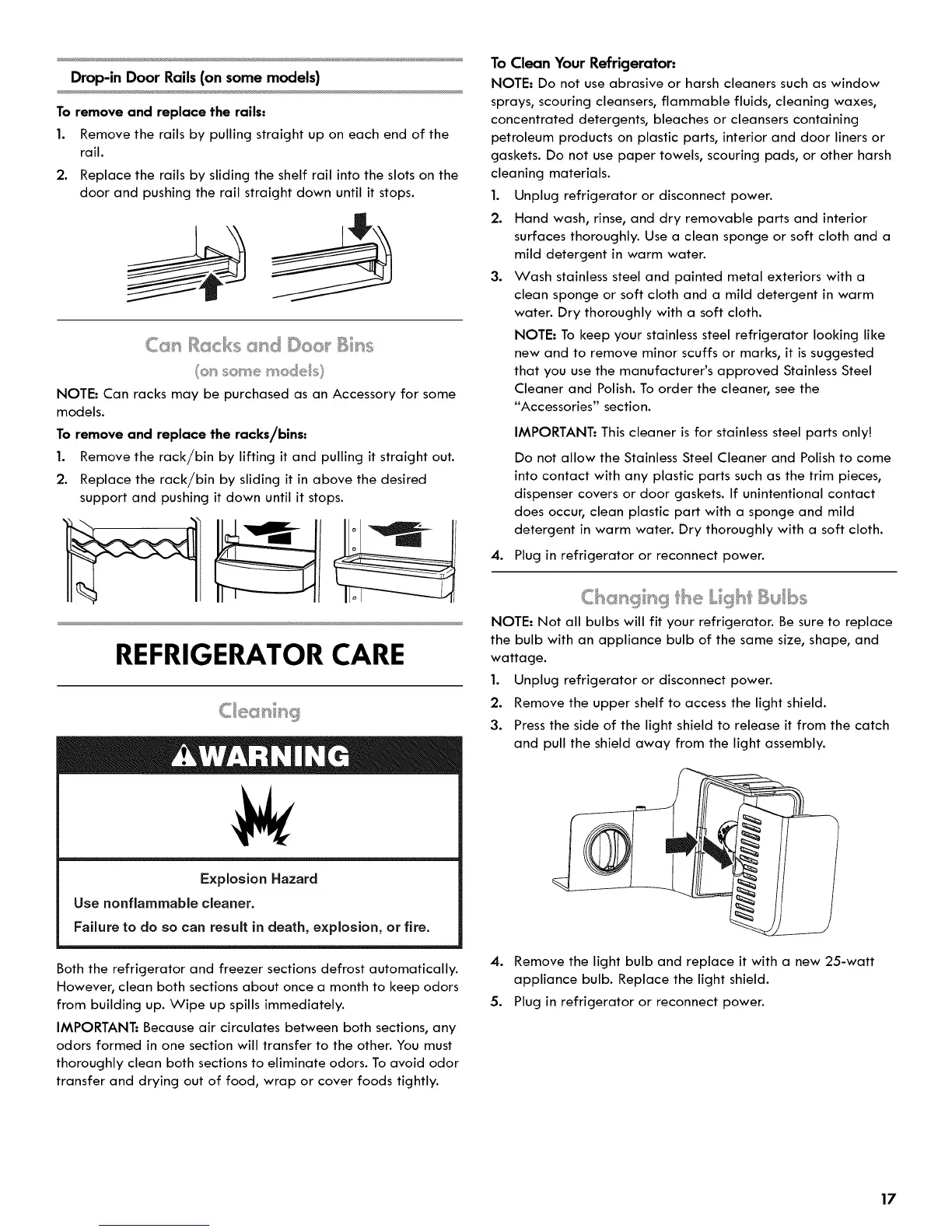 appliance bulb. Replace the light shield.