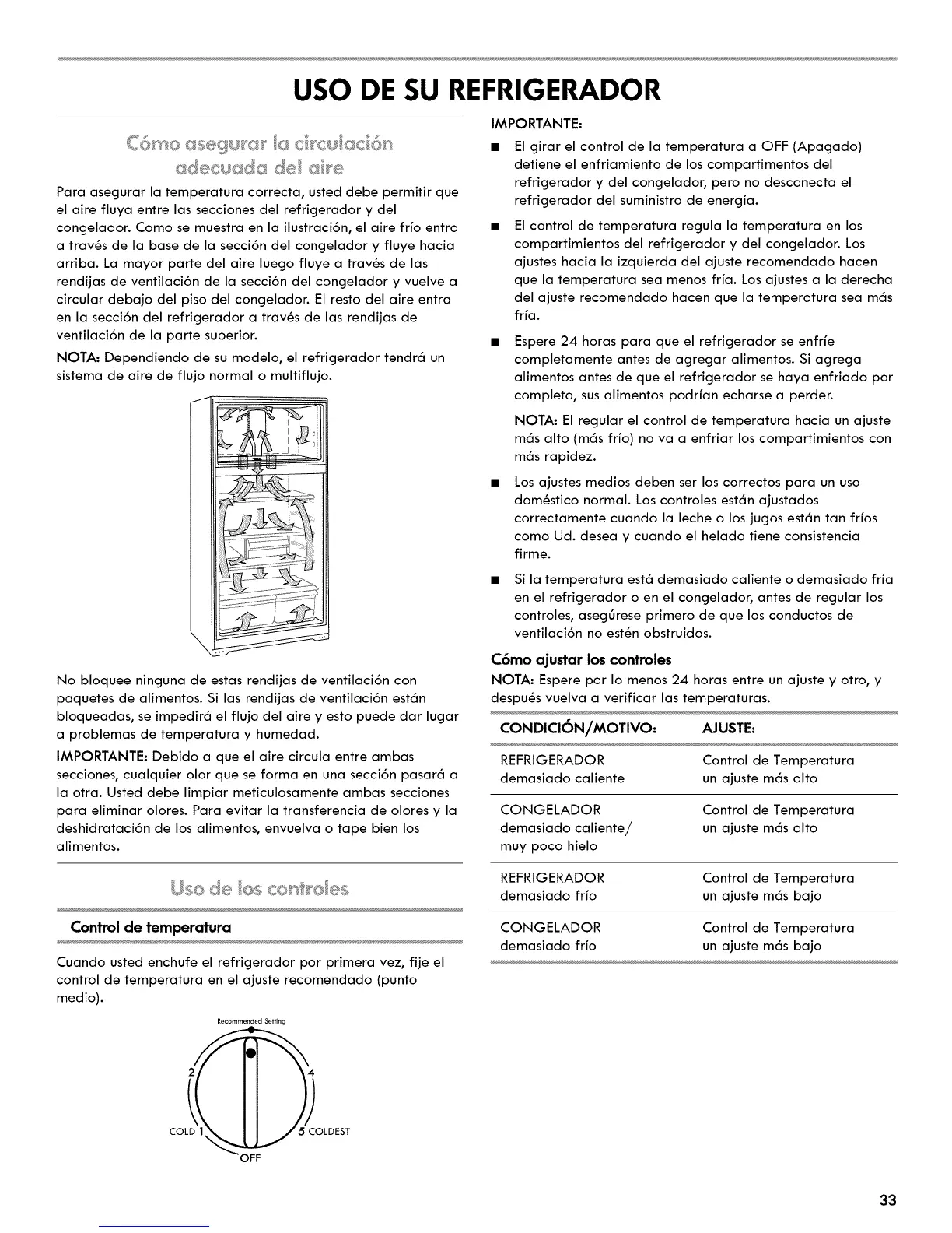 del ajuste recomendado hacen que la temperatura sea m6s