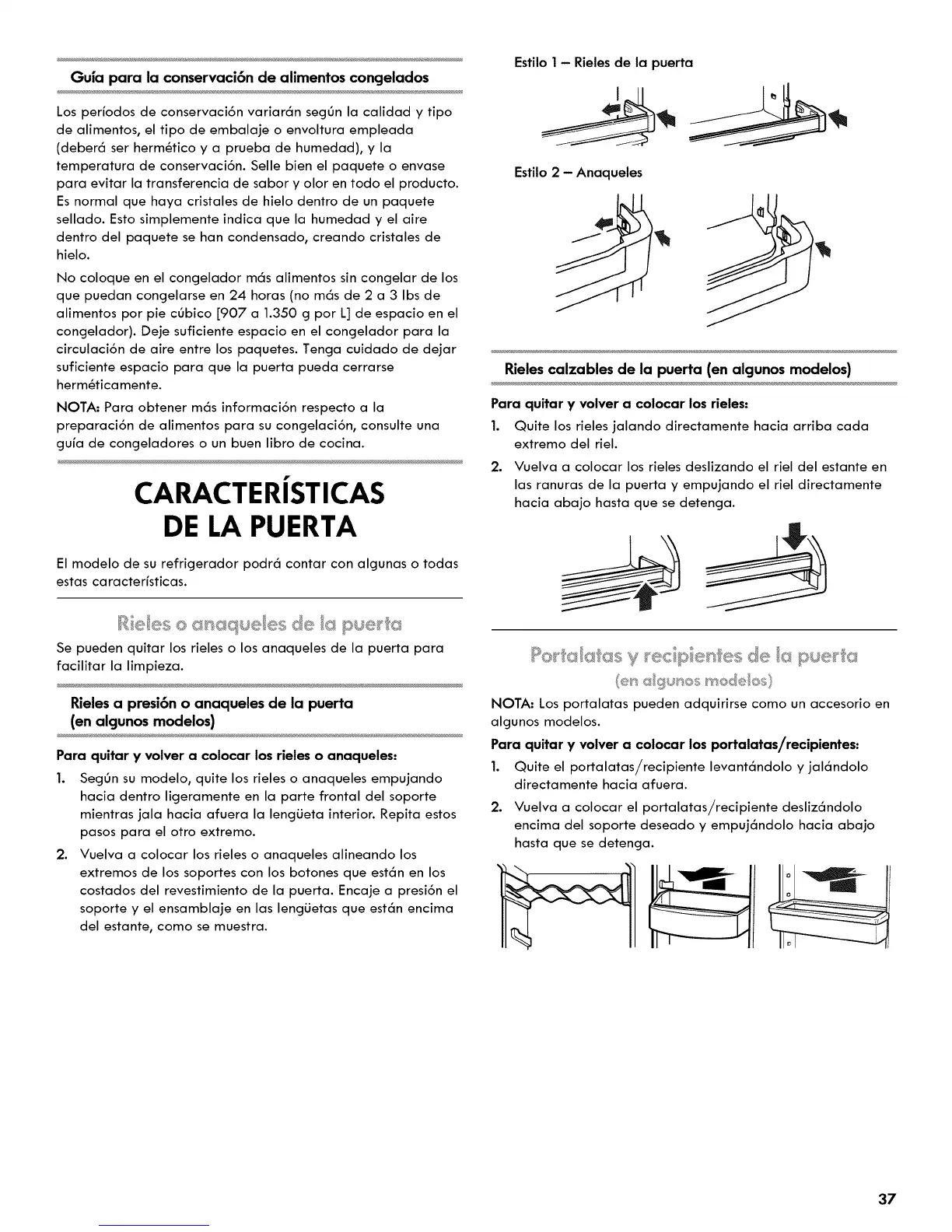 Se pueden quitar los rieles o los anaqueles de la puerta para