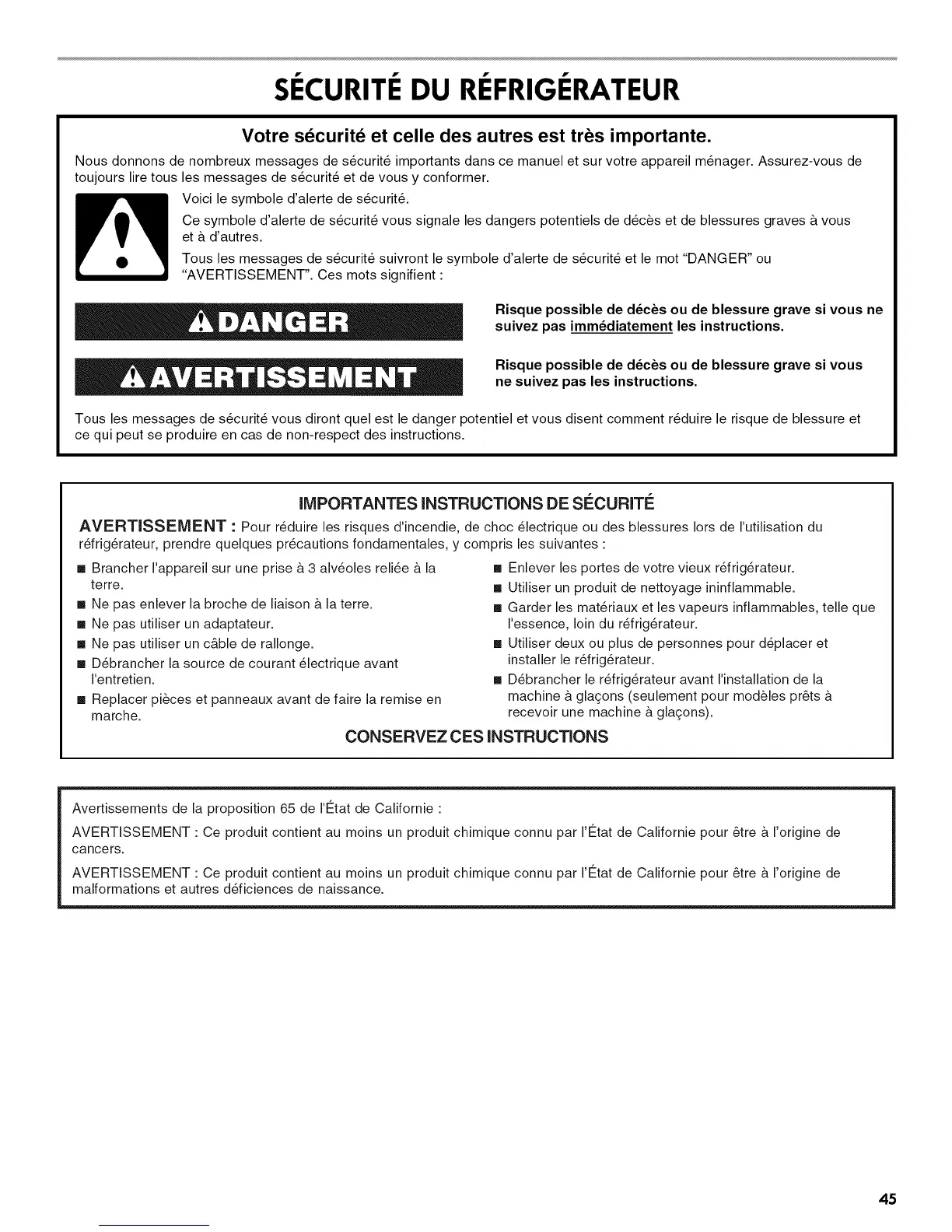 AVERTISSEMENT " Ce produit contient au moins un produit chimique connu par I'¢:tat de Californie pour 6tre & I'origine de