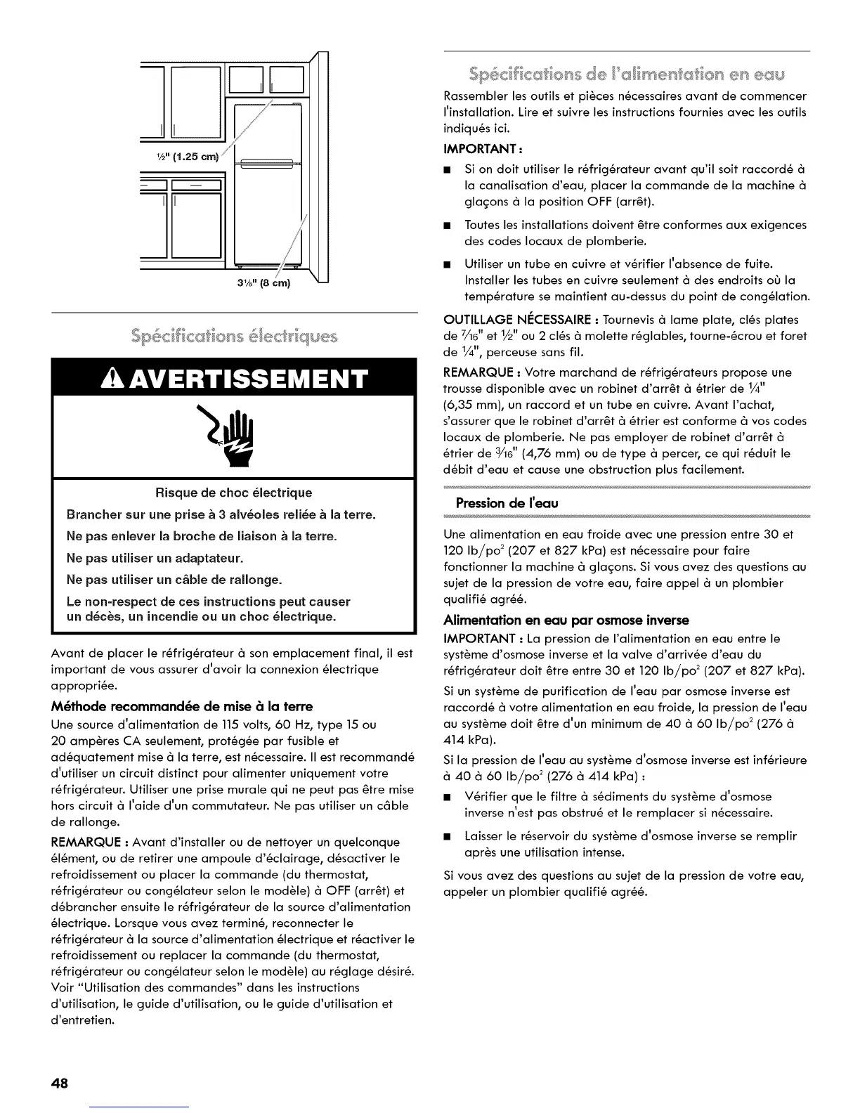 r_frig_rateur doit _tre entre 30 et 120 Ib/po _(207 et 827 kPa).