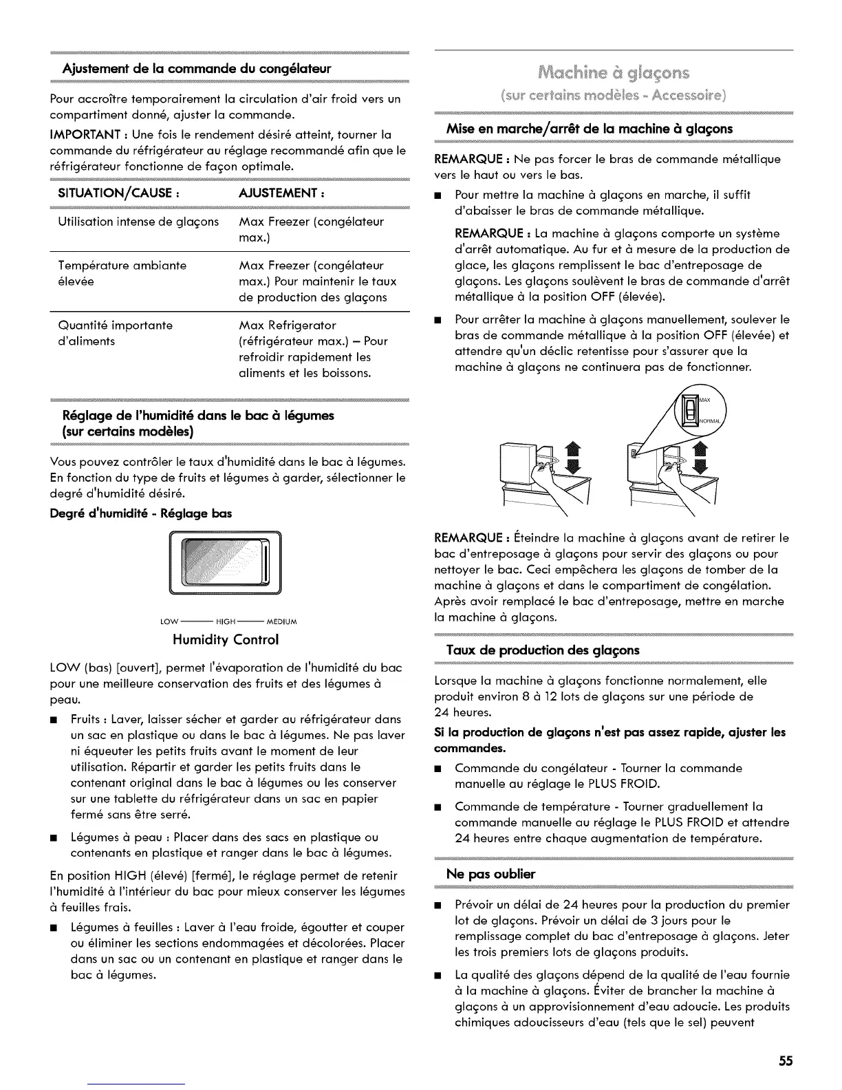 remplissage complet du bac d'entreposage _ gla£:ons. Jeter