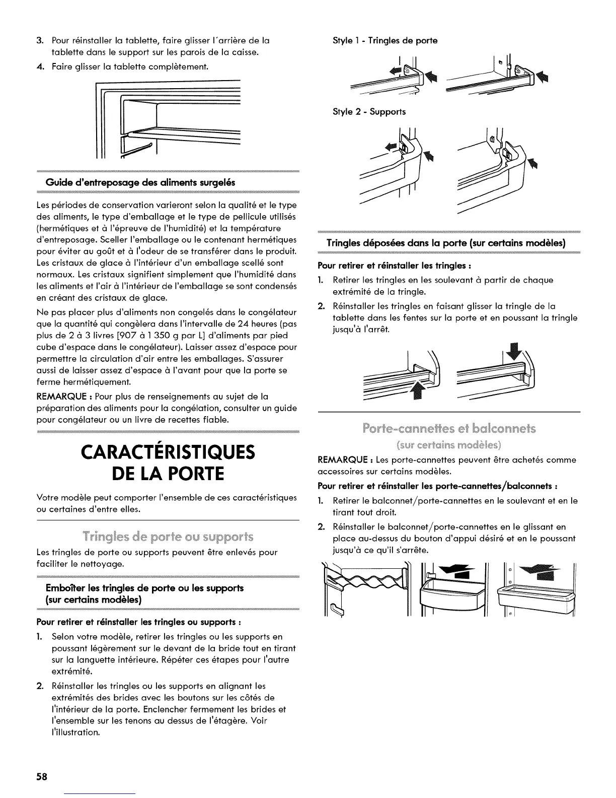 Les tringles de porte ou supports peuvent 8tre enlevis pour