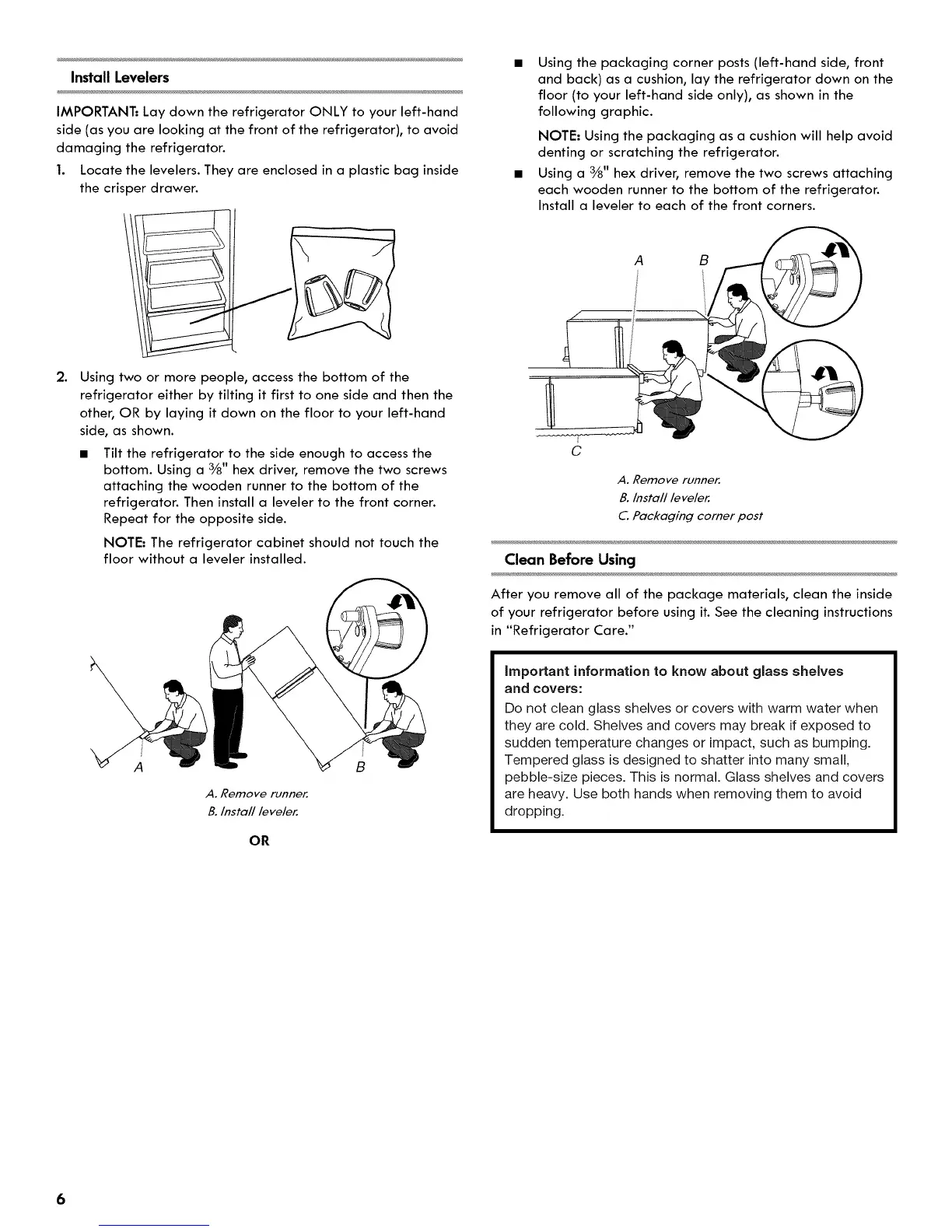 1. Locate the levelers. They are enclosed in a plastic bag inside
