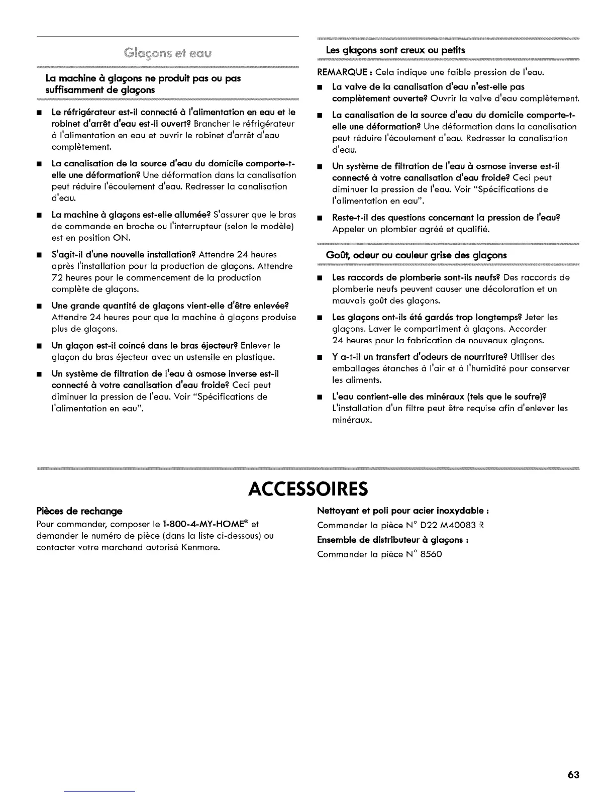 gla_;ons. Laver le compartiment _ glac;ons. Accorder
