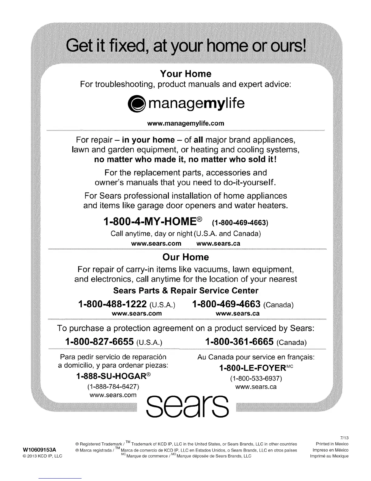 ® Registered Trademark / Trademark of KCD IP, LLC in the United States, or Sears Brands, LLC in other countries