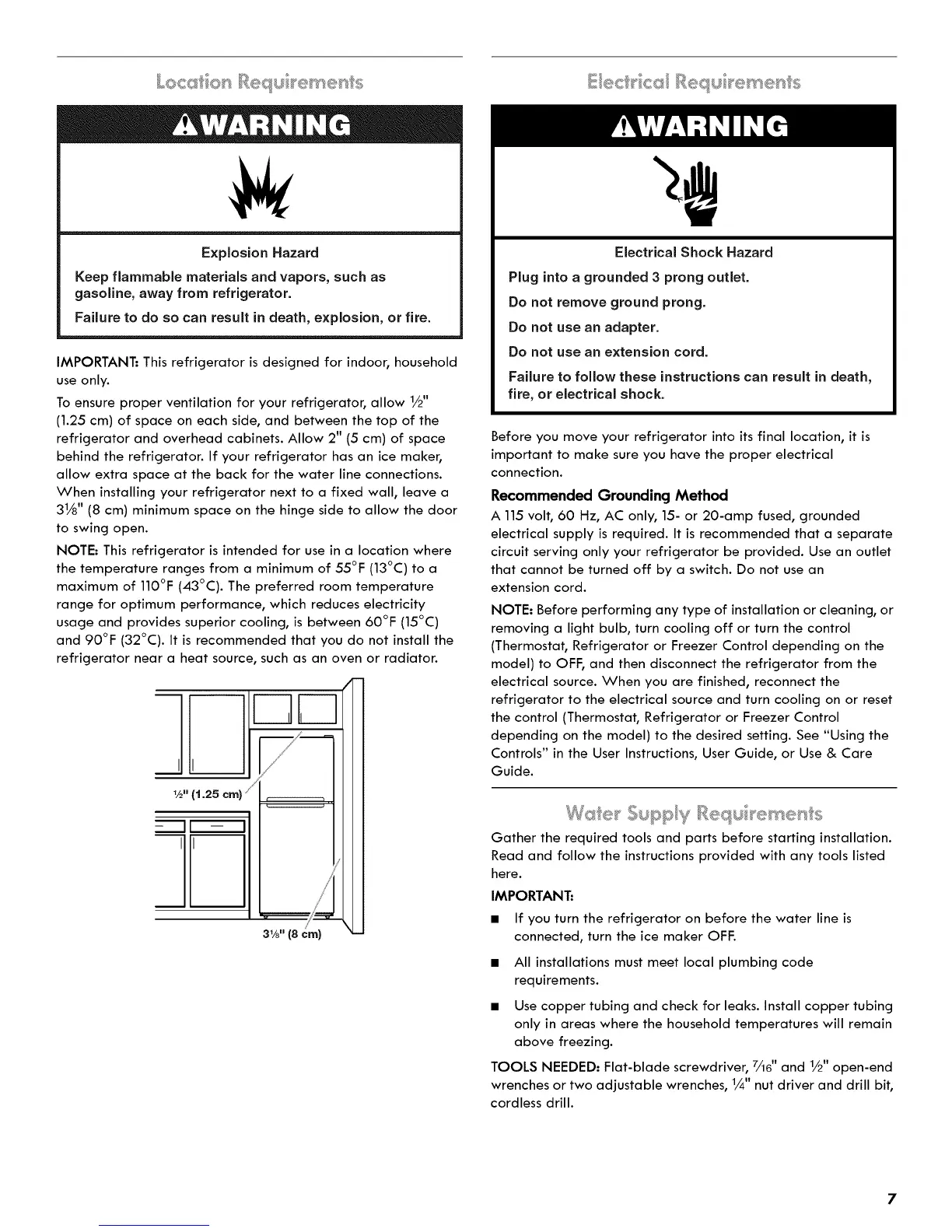refrigerator and overhead cabinets. Allow 2" (5 cm) of space