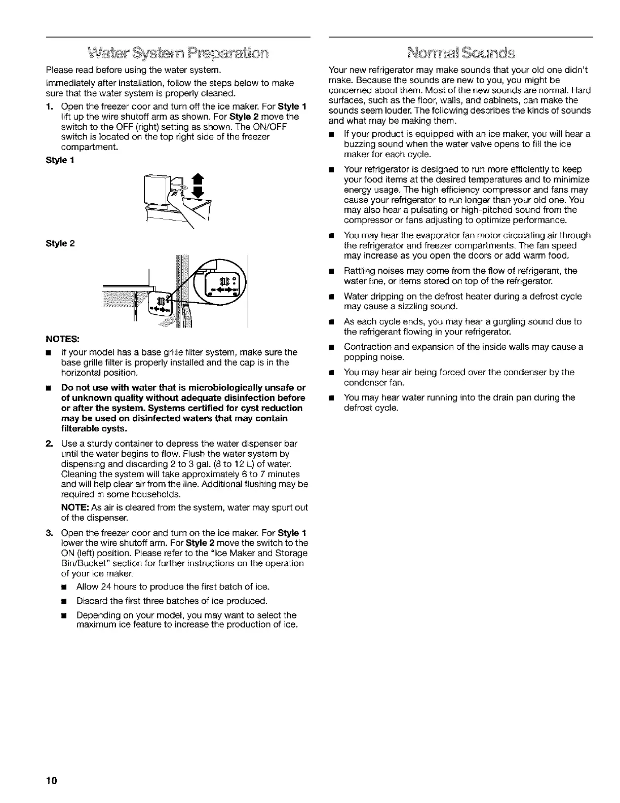 Please read before using the water system.
