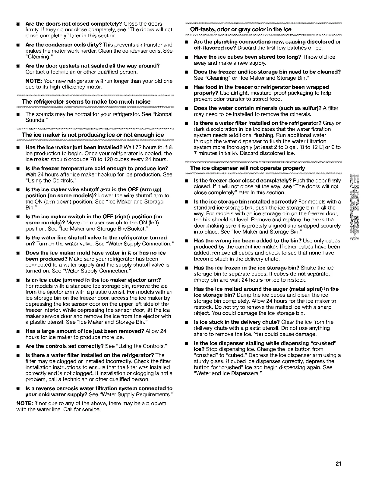 firmly. If they do not close completely, see 'q-he doors will not Off-taste, odor or gray color in the ice