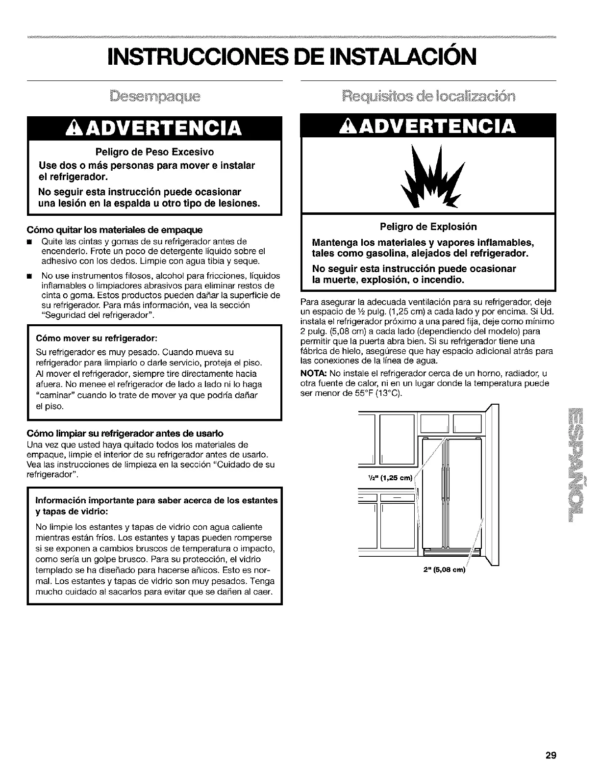 NOTA: No instale el refrigerador cerca de un homo, radiador, u
