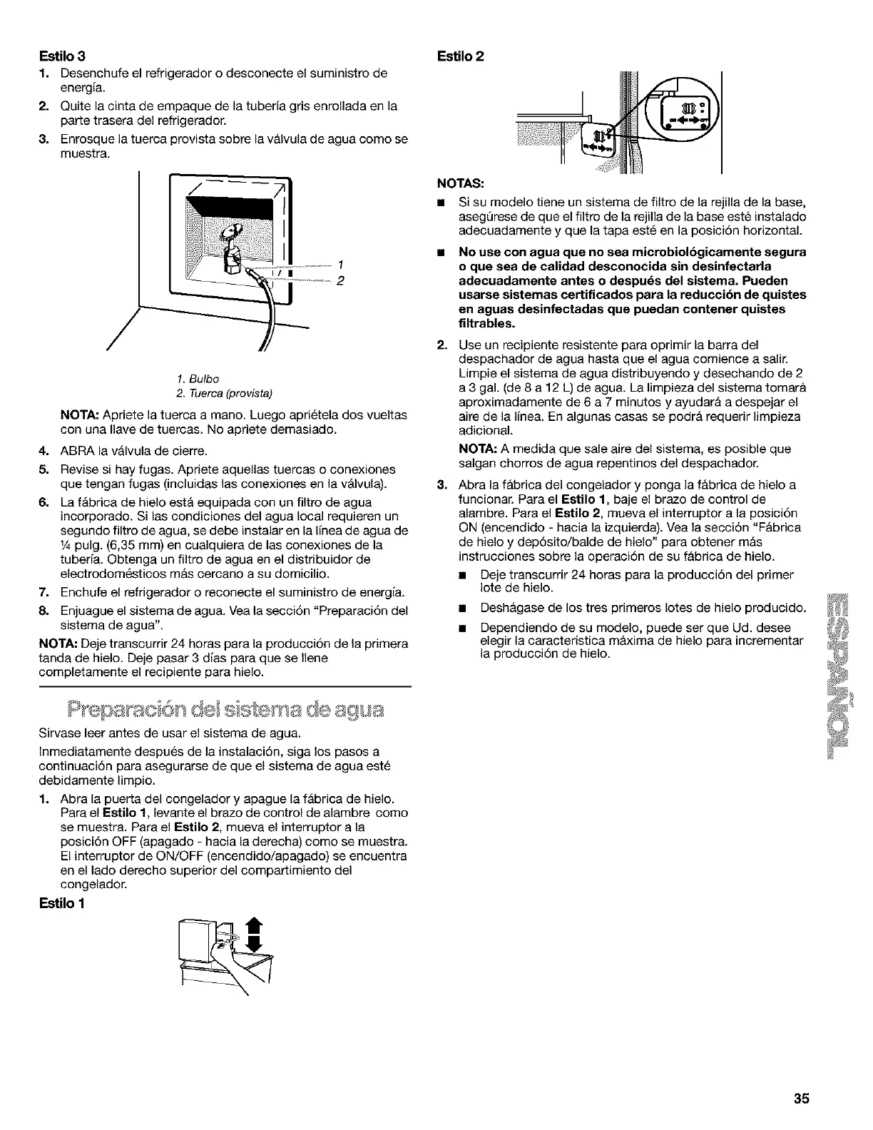 continuaci6n para asegurarse de que el sistema de agua est6