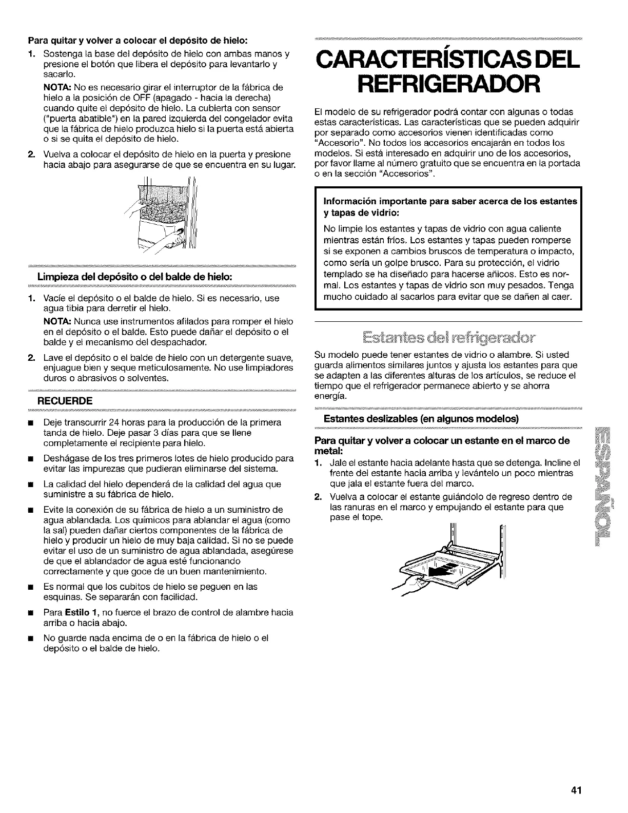 Estantes deslizables (en algunos modelos)