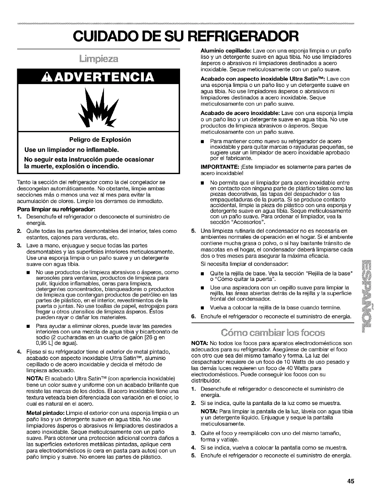 adecuados para su refrigerador. Asegt_rese de cambiar el foco