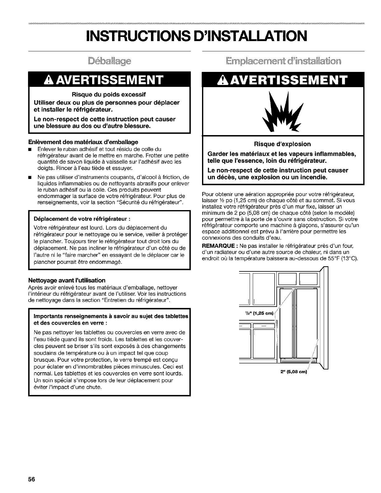 le plancher. Toujours tirer le r6frig6rateur tout droit lots du