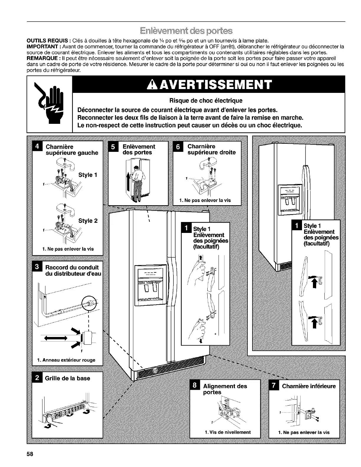 Ddconnecter la source de courant dlectrique avant d'enlever les portes.