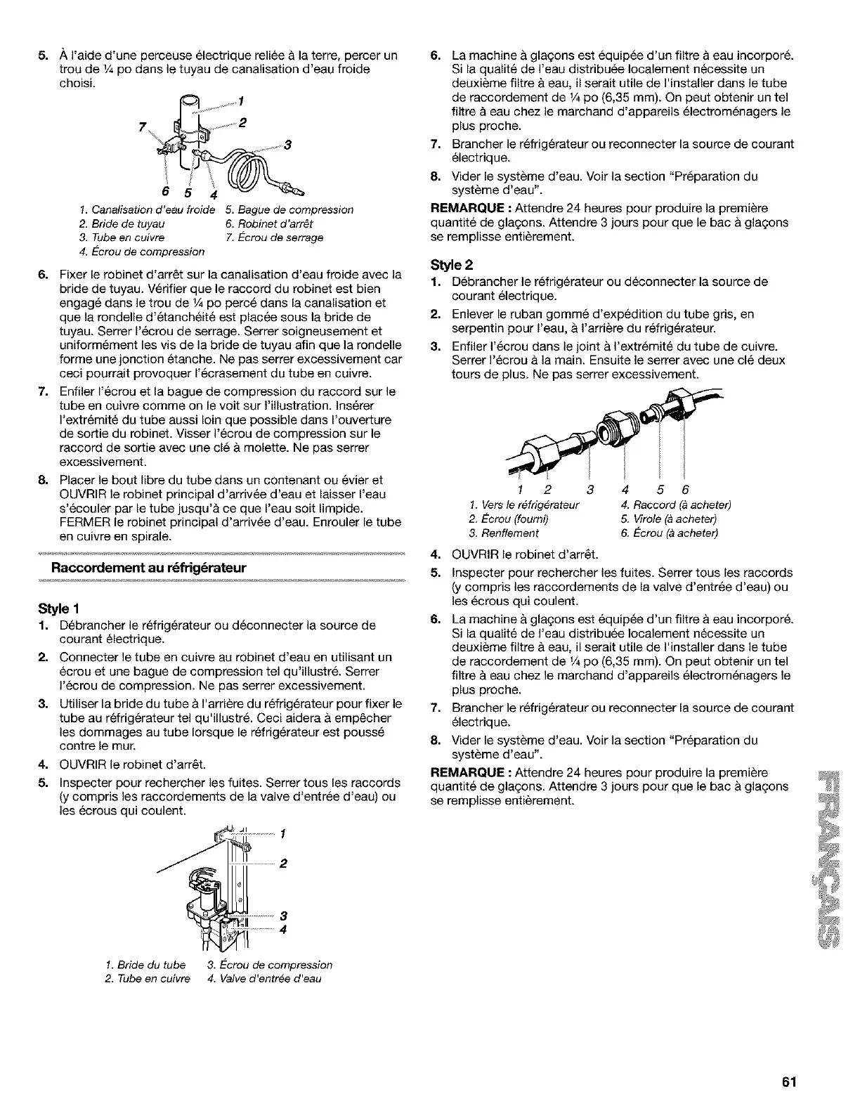 2. Tube en cuivre 4. Valve d'entree d'eau