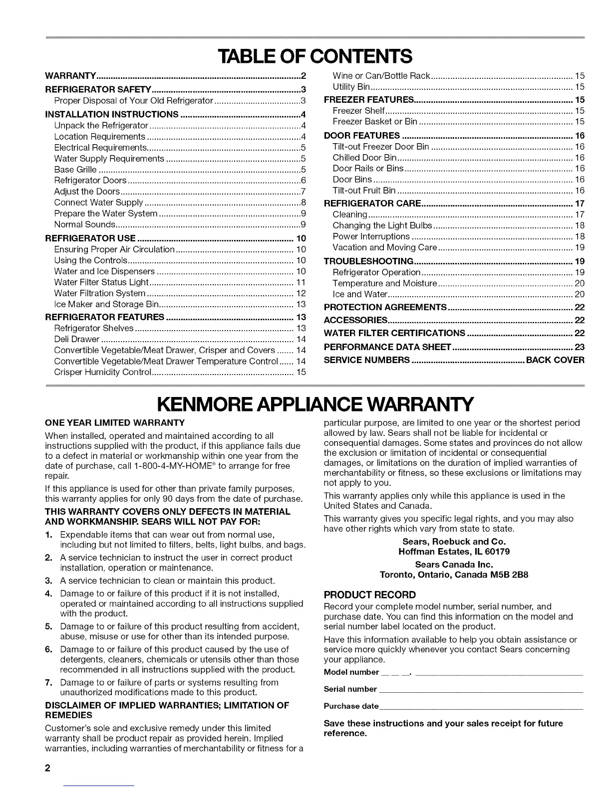 Proper Disposal of Your Old Refrigerator .................................... 3