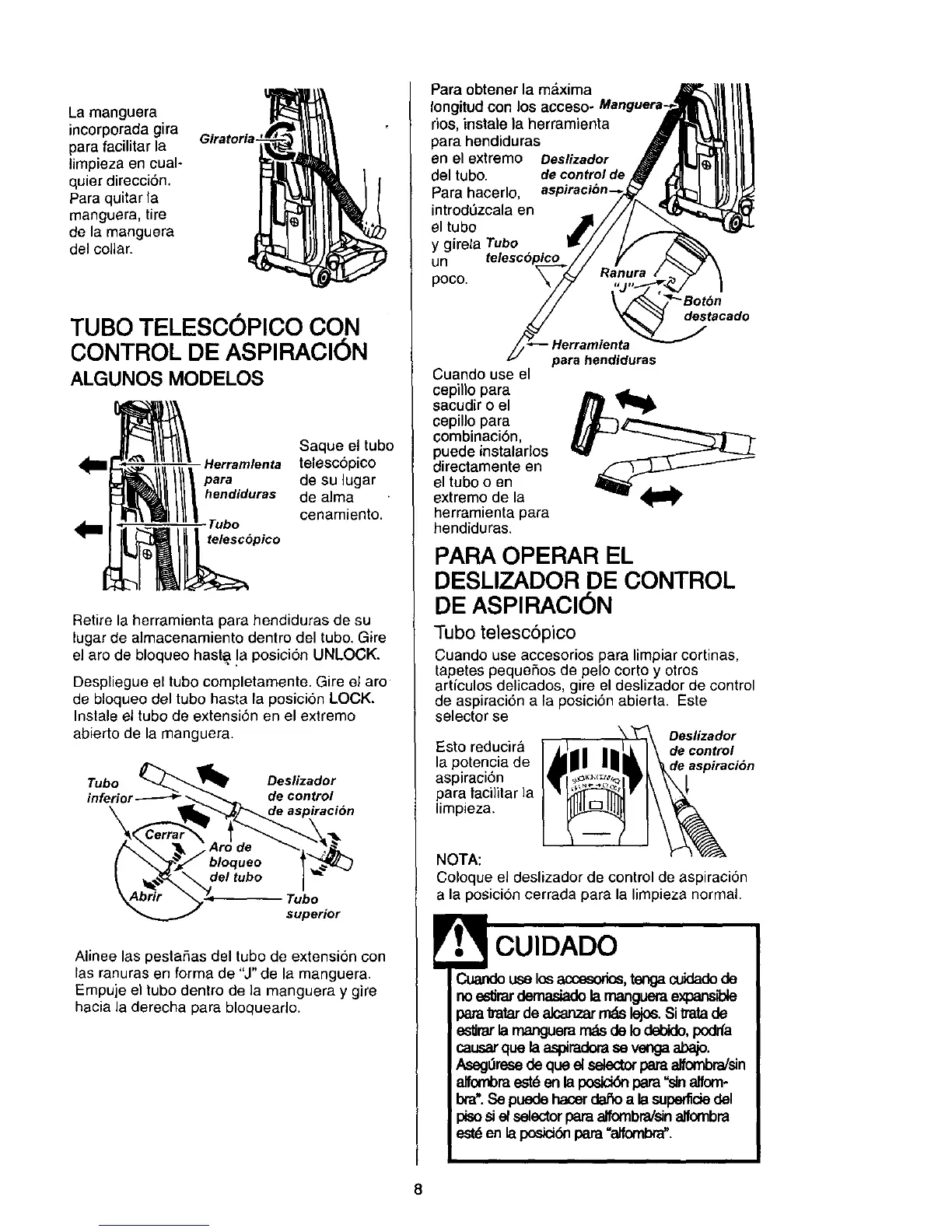 Alinee las pestaSas del tubo de extensi6n con