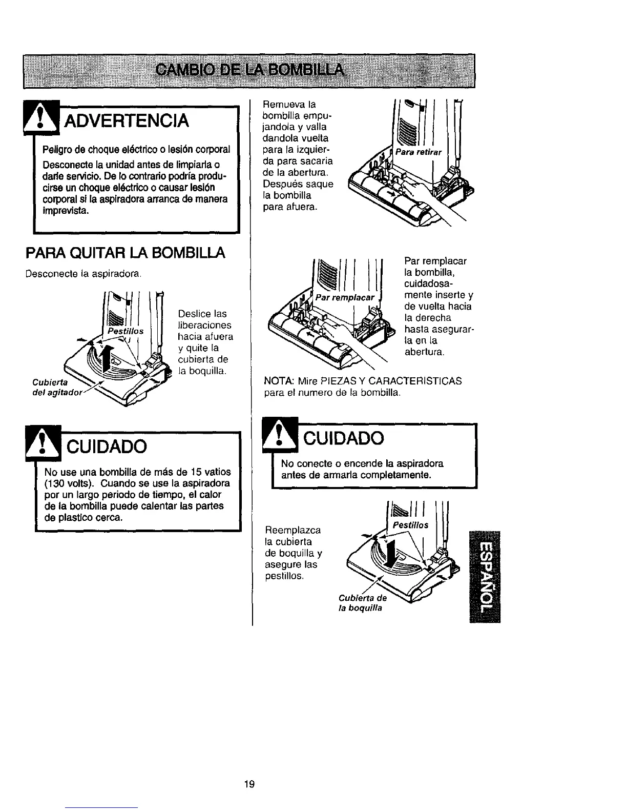 NOTA: Mire PIEZAS Y CARACTERISTICAS