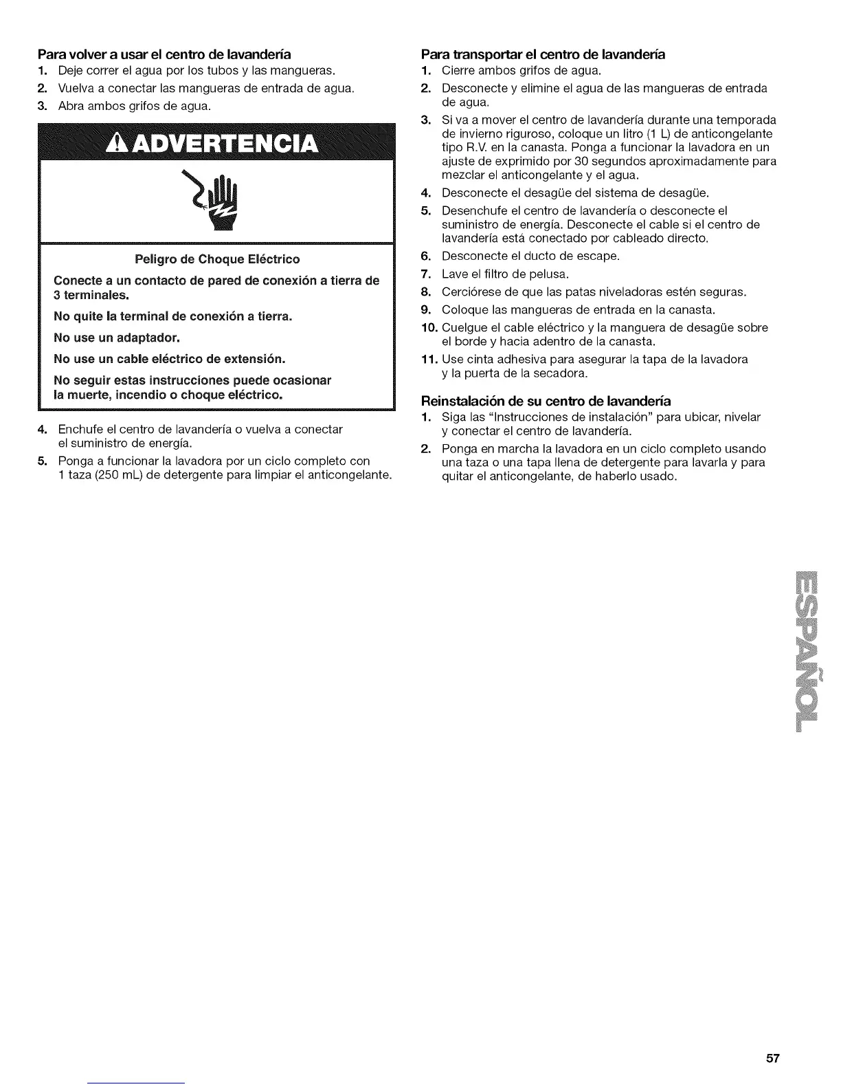 4. Enchufe el centro de lavanderia o vuelva a conectar