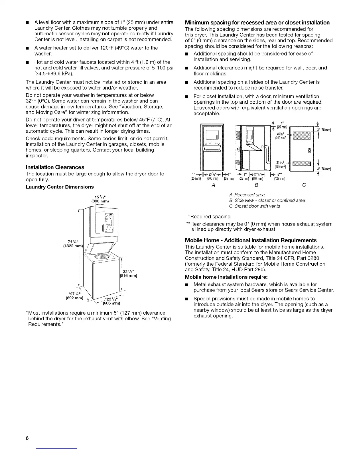 this dryer. This Laundry Center has been tested for spacing